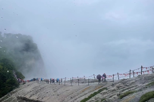 周五在準備工作做好以后我們輕裝上陣前往孟塬,陜西遭遇漫長雨季,這場六月的雨已經(jīng)下了兩周,淅淅瀝瀝不停。華陰市發(fā)生滑坡、崩塌、泥石流等地質(zhì)災害的可能性較大,景區(qū)一度關(guān)閉。但我們還是按照原先的路程出發(fā)了,軟臥一夜直達孟塬,來到華山腳下,我們到的時候天氣雖然陰沉,但是沒有下雨,華山徒步地點關(guān)閉,只有西峰索道開著,我們的計劃是上西峰索道,下西峰索道,北峰索道還是關(guān)閉。
