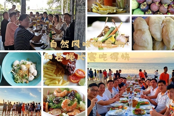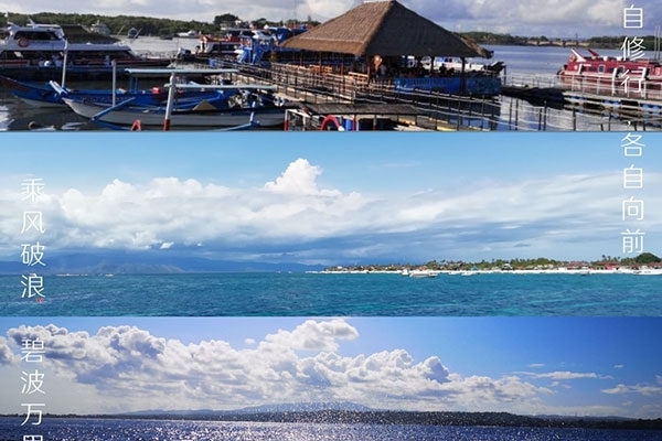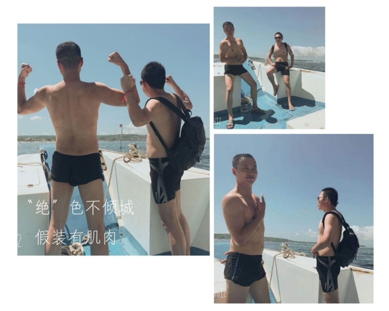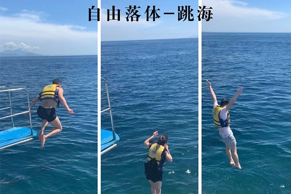 半小時后,我們首先到達(dá)了海中間由兩艘游輪搭建的漂浮“海上游玩基地”,除了“香蕉船”“甜甜圈”和“浮潛”這些項目,最有意思的是“跳?!?,作為非專業(yè)隊員,大家入水姿勢各異,激起巨大的浪花。遺憾的是,“女神”曹總并沒有參與“跳海”,估計她是為大家著想,怕入水海平面升高2米,淹沒“基地”,多年以后,我還是要感謝曹總的“不淹之恩”,讓我依然可以坐在在夕陽下回憶往昔。